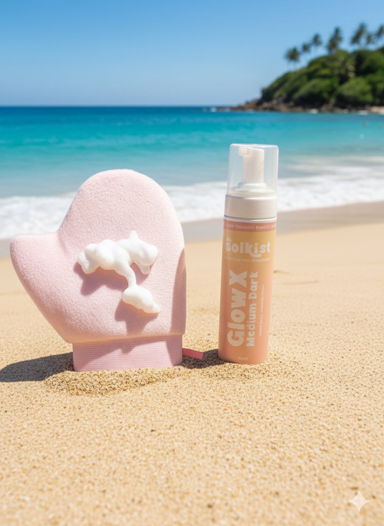 For a flawless, streak-free glow, prepare your skin 24–48 hours prior by waxing or shaving and exfoliating with our Glow Reset Body Primer and Glow X Exfoliating Mitt.
